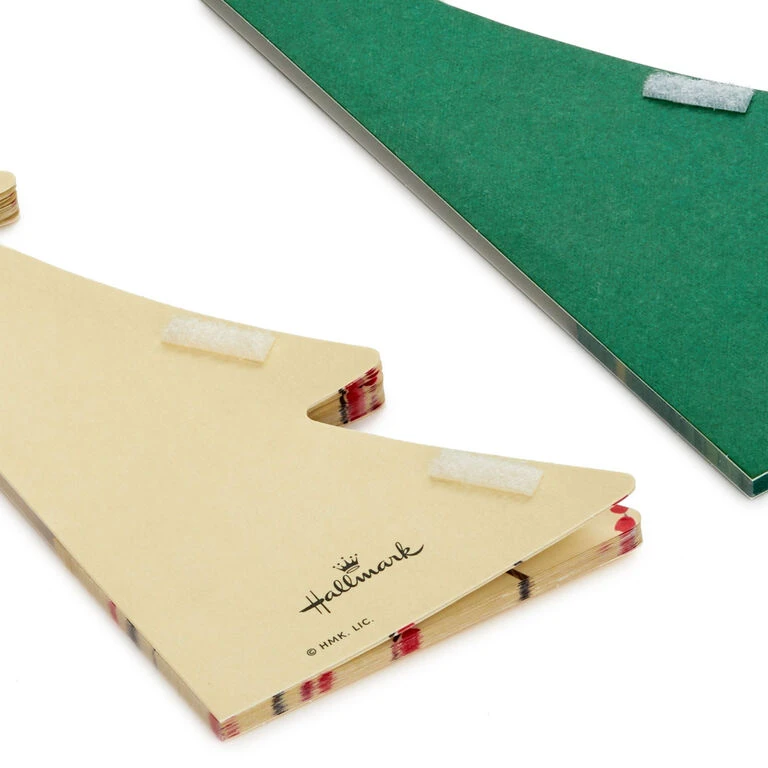 - Hallmark Paper Wonder pop-up Christmas decorations set includes 3 coordinating paper honeycomb trees: small cream tree with holly berry branches print, medium green tree with pine branches print and die-cut cardinal topper, large light green tree with evergreen sprigs and berries print.